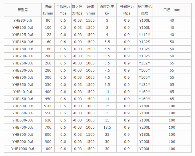 YHB系列立式齒輪油泵性能參數(shù)表: